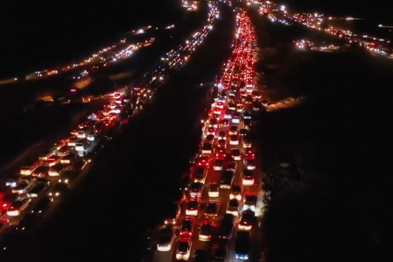 Thousands of cars jamming roads to Damascus as displaced people return to the capital after the Assad regime fell.