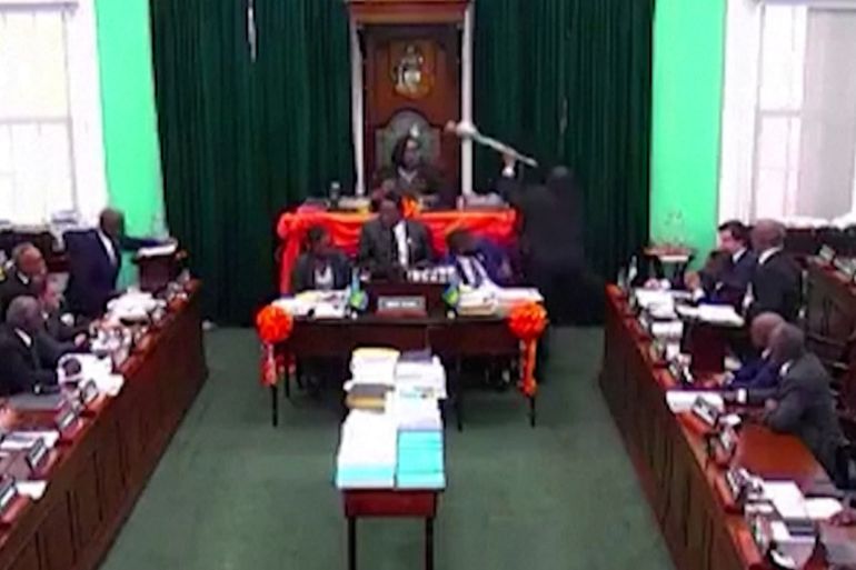 Video from the Bahamas shows an opposition MP staging a protest in parliament.
