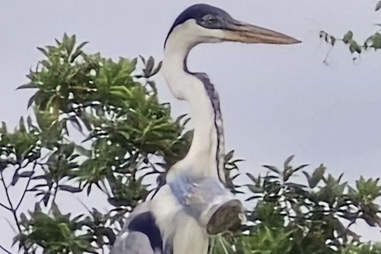 A Brazilian biologist who spotted a heron with a plastic cup stuck in its throat is on a mission to save it.